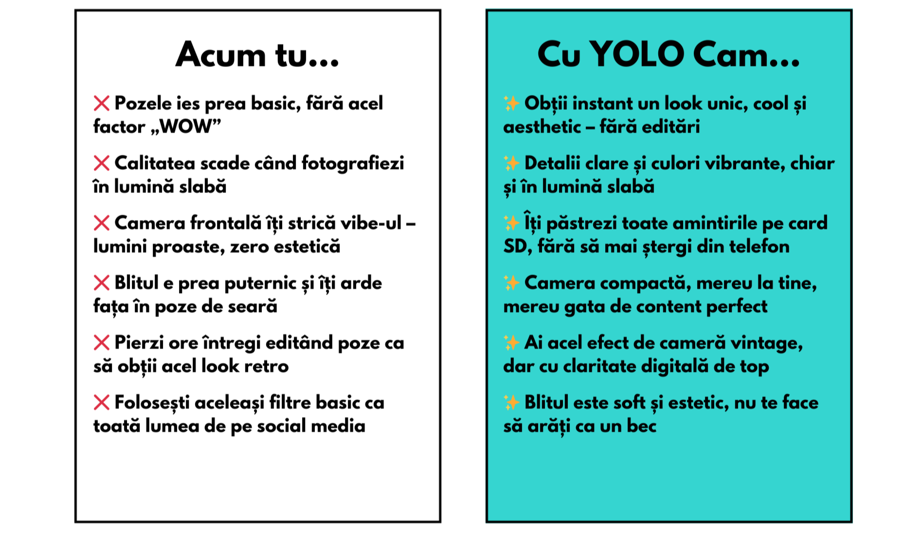 Dă swipe că să vezi cum camerele digitale YOLO transformă pozele tale în amintiri epice, cu un vibe cinematic.