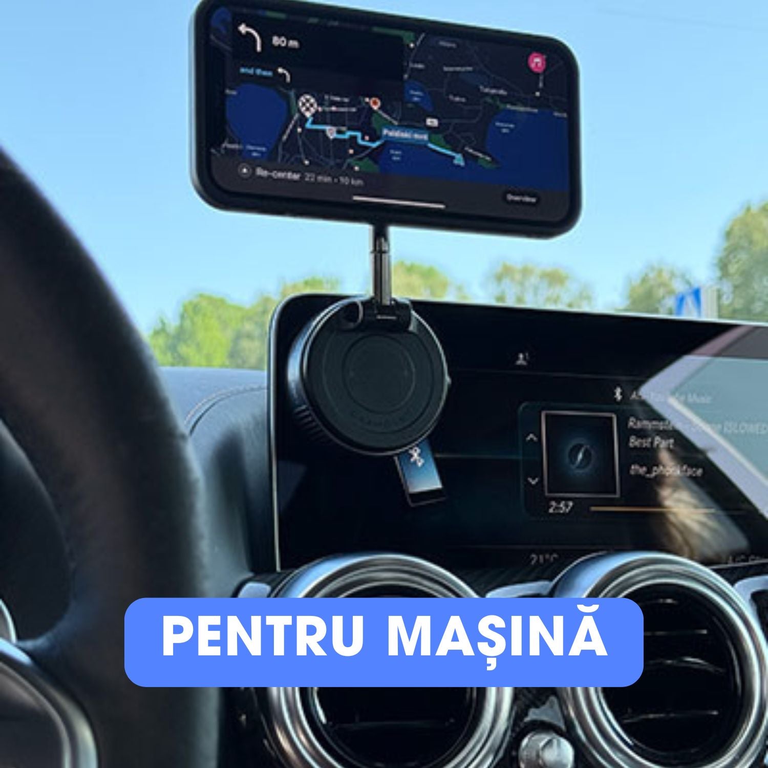 🔥 Suport magnetic pentru telefon, pliabil și rotativ 360°, cu prindere prin vacuum.