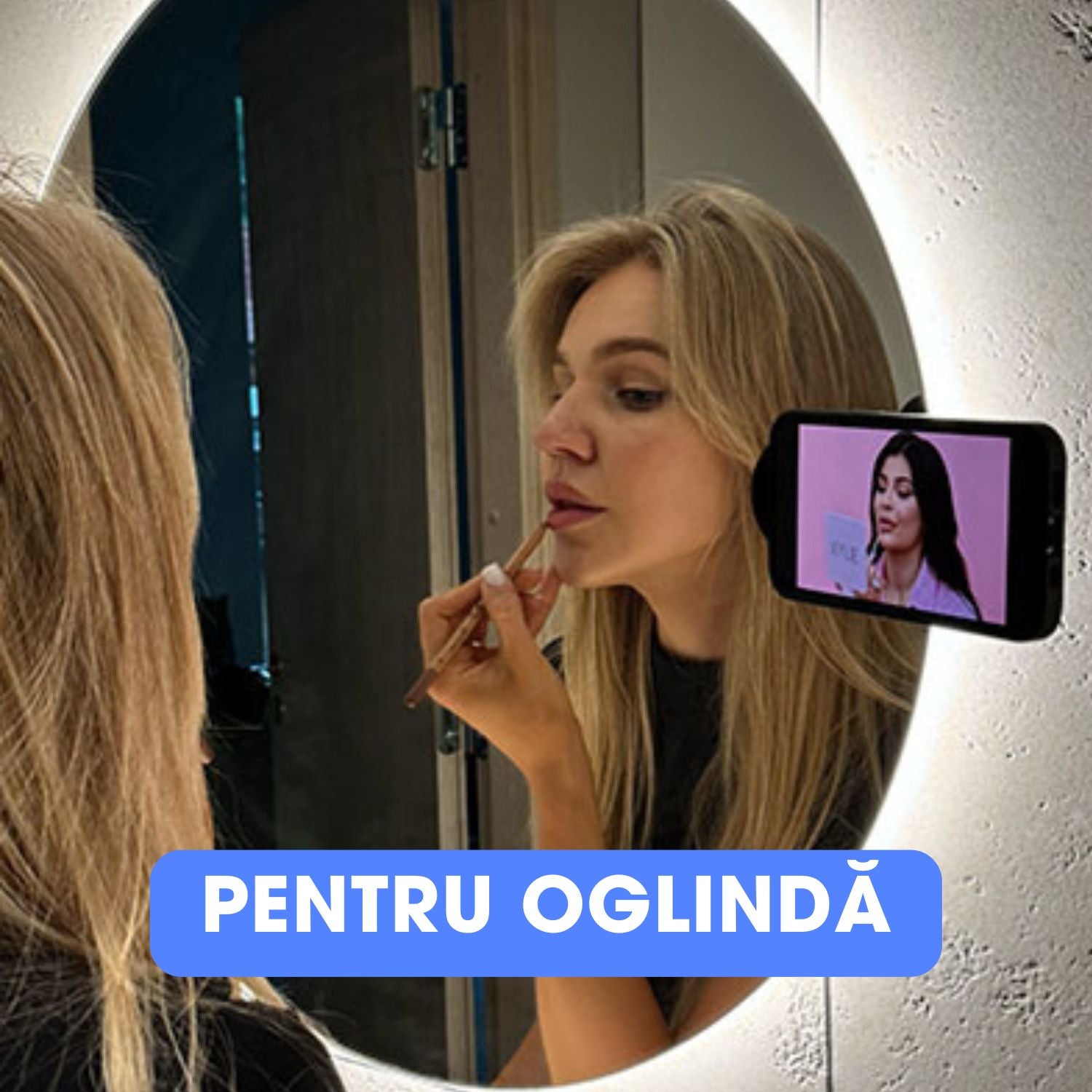 🚗 Lipește-l pe parbriz pentru GPS, in bucătărie pentru rețete sau pe oglindă pentru a-ți filma antrenamentele. Mută-l oriunde în doar câteva secunde — în mașină, pe birou, la sală sau în studio.